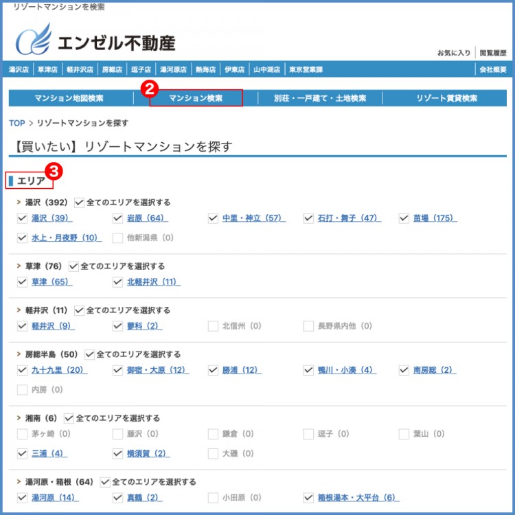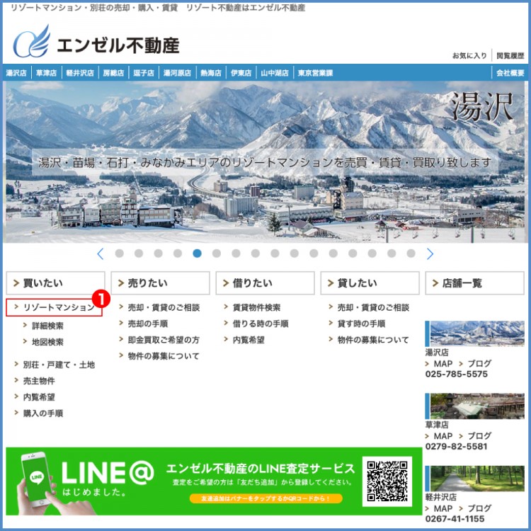 ①エンゼル不動産メイントップページより検索ページへ移動