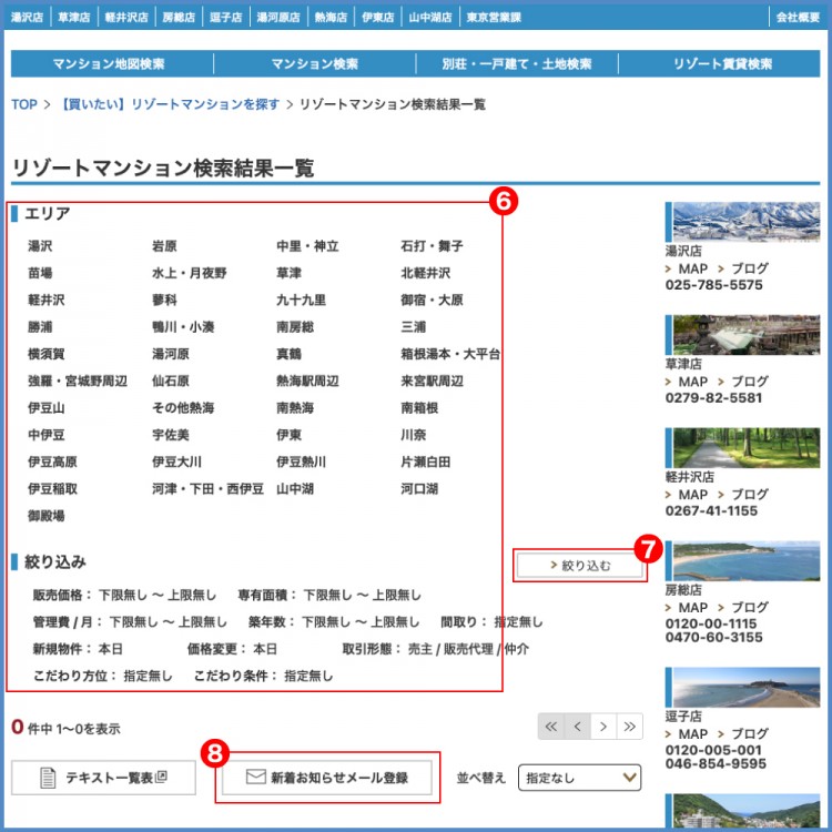 リゾートマンションの新着お知らせメール登録方法
