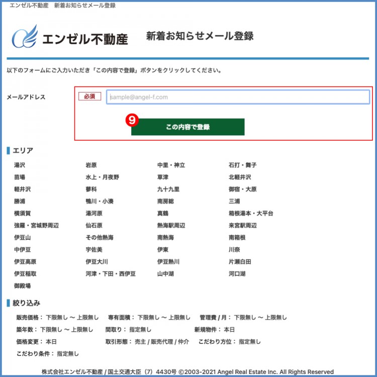 ⑧メールを受け取りたい条件が決定したら、こちらのボタンをクリックしてください -