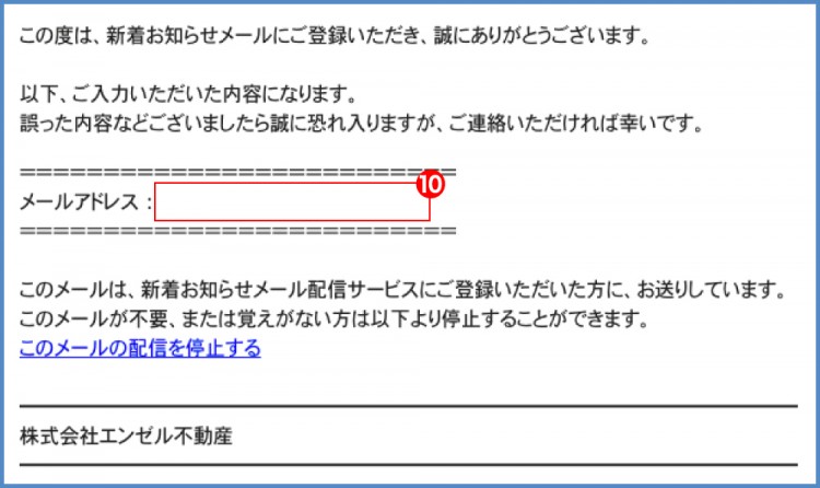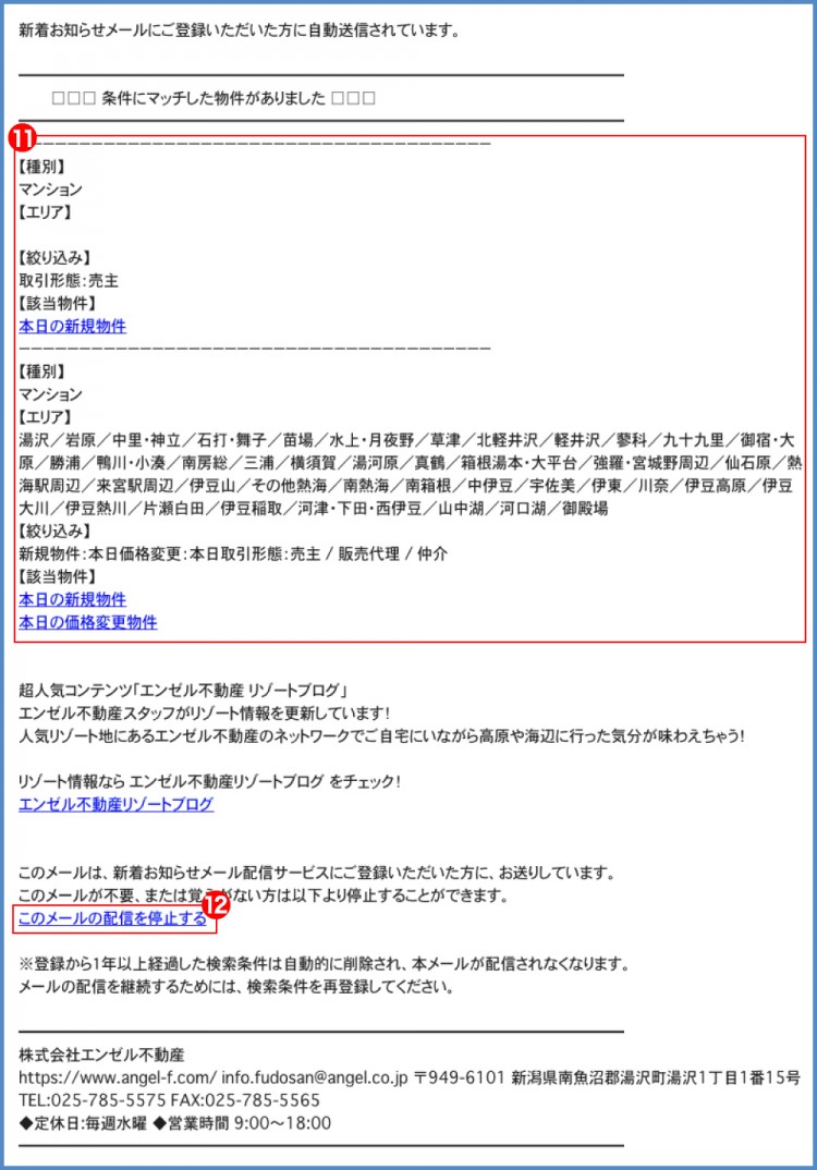 ⑪指定した条件にマッチする物件が登録された際に【新着お知らせメール】が配信されます