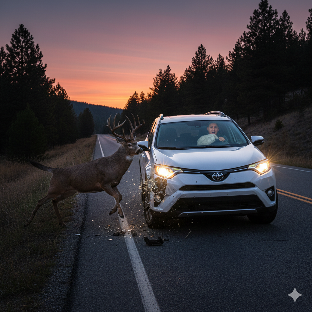 先日、御殿場からの帰り道、私の乗った車が鹿と遭遇、いや衝突しました。