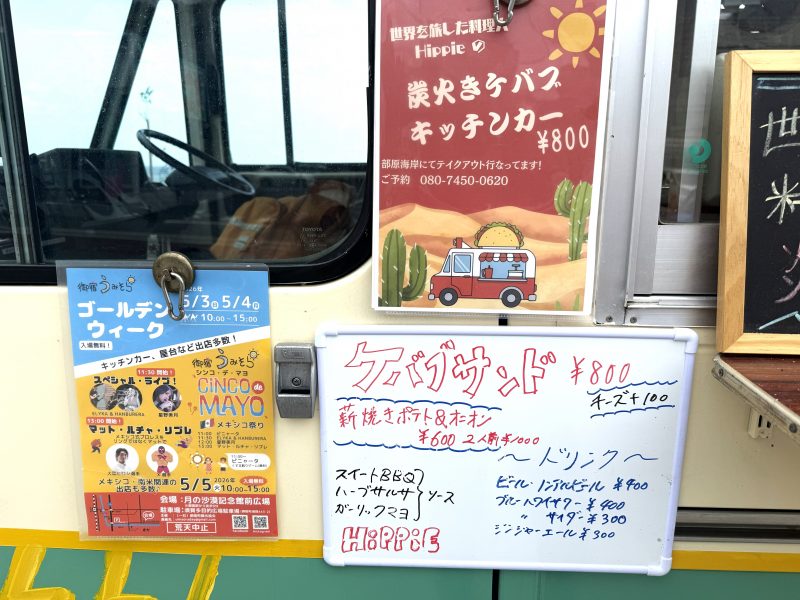 先週、部原海岸の目の前で、思わず二度見してしまうキッチンカーを発見しました。