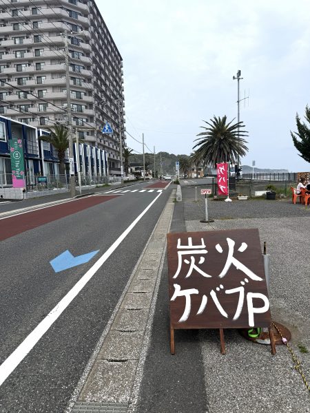 「炭火ケバブ」という看板が出ていて、海沿いの景色の中にポツンと現れたその雰囲気がなんとも気になり、2~3日モヤモヤ…。ついにお昼ご飯を買いに行ってきました。