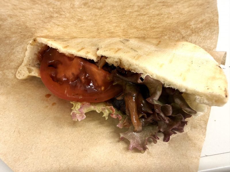 ケバブといえば、あのくるくる回るお肉を削いでパンに挟むスタイルを思い浮かべますが、こちらはひと味違います。
