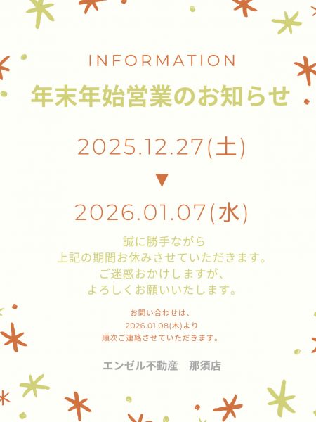 エンゼル不動産那須店の本年の営業も残り1日となりました。