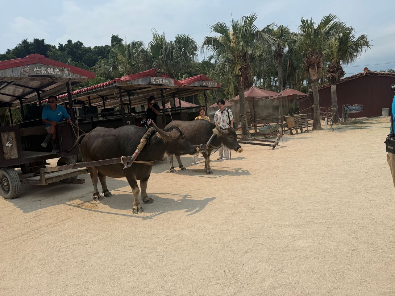 水牛車に揺られながら、赤い瓦屋根の家々と白い砂の道を眺める時間は、まさに至福のひととき。三線と歌声を聞きながらのんびりとした水牛の歩みとに合わせて心もリフレッシュされました。