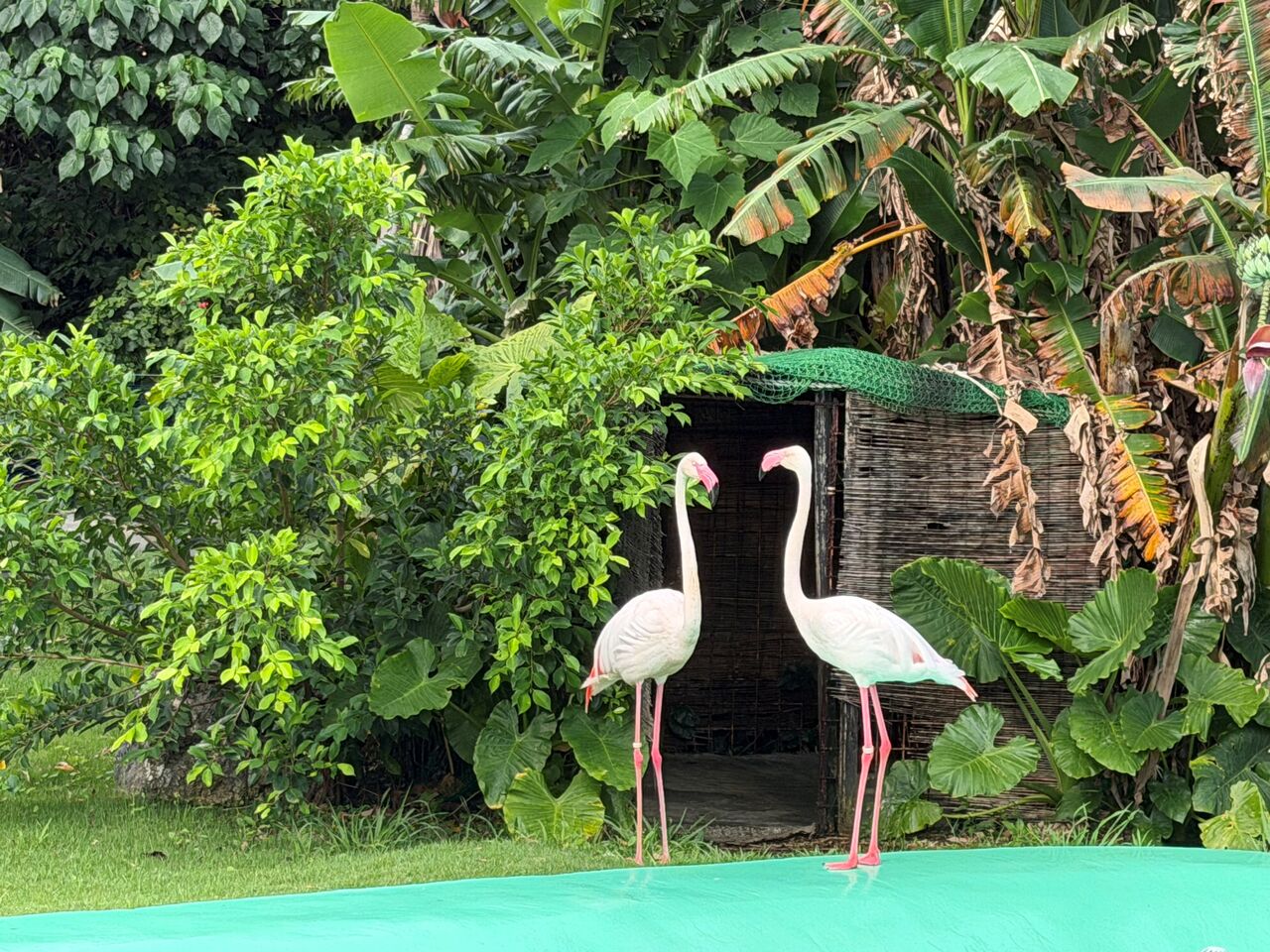 近くでフラミンゴがお出迎え