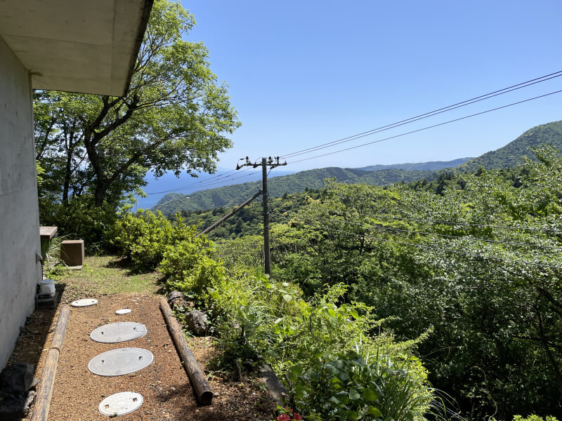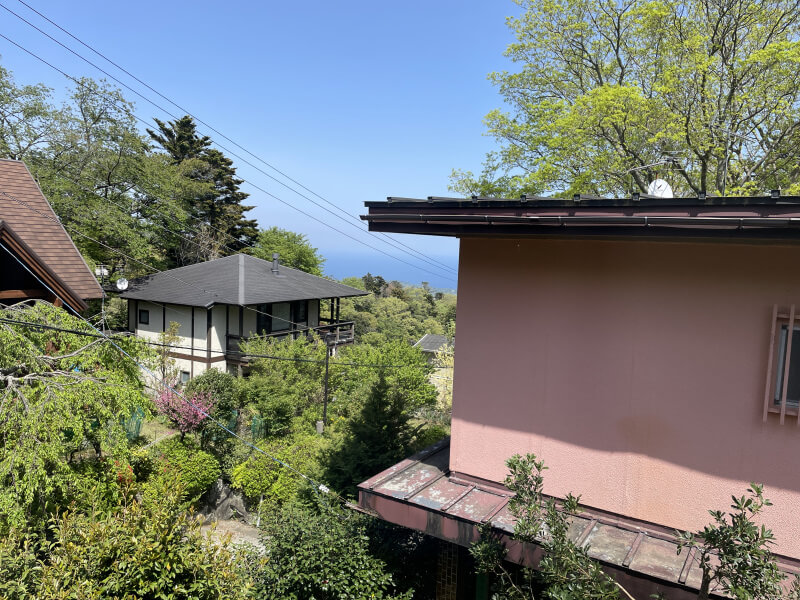 高台に位置し、海山眺望を楽しめます。浴室は伊豆石を利用しており高級感があり、バスビューは自然が広がっております。又建物の上方からの進入も可能です。