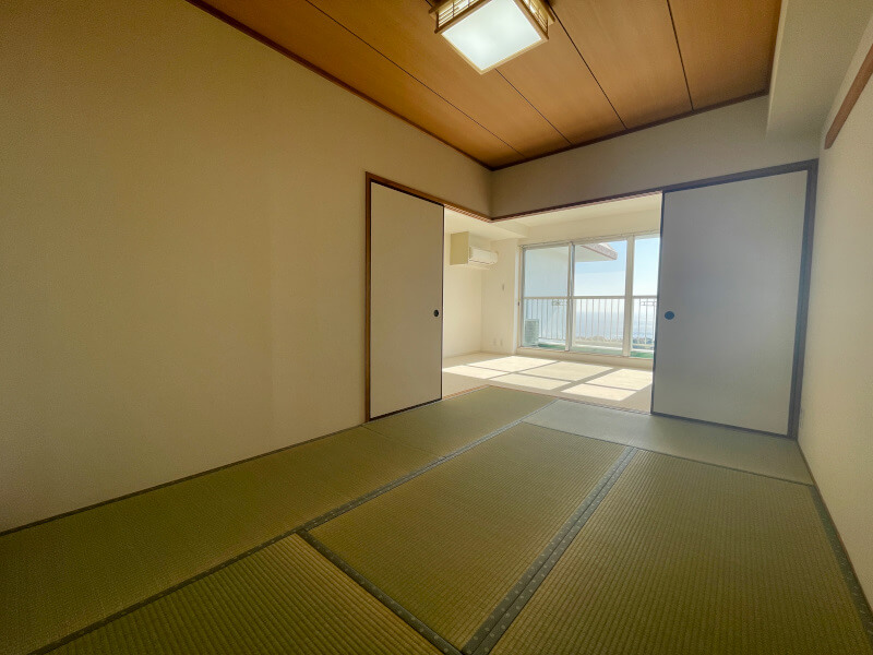 海を望む南向きのお部屋。明るい陽光が一日中差し込み、フルリフォーム済みのお部屋で、心地よい毎日をお過ごしいただけます。 開放感あふれる眺望に加え、大切なペットと一緒に暮らせる快適な住まいです。
