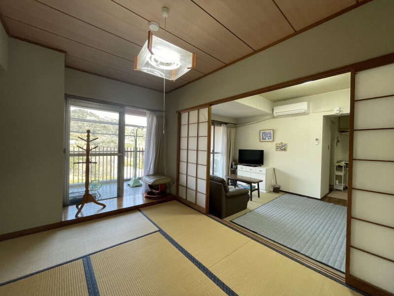 バルコニーから緑が見え、四季折々の自然な環境の中でゆったりしたお時間を。 室内きれい、即入居可能!