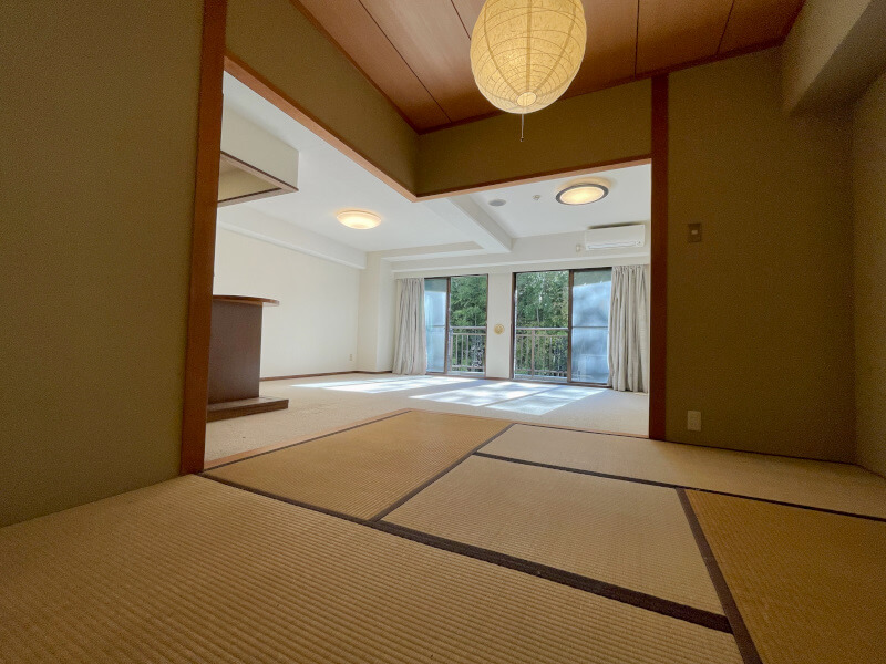 バルコニーから緑が見え、四季折々の自然な環境の中でゆったりしたお時間を。 室内きれい、即入居可能!