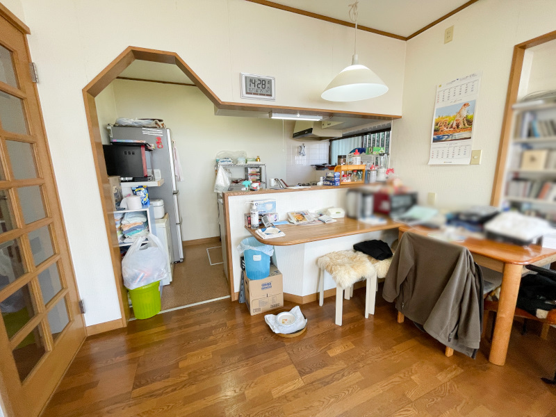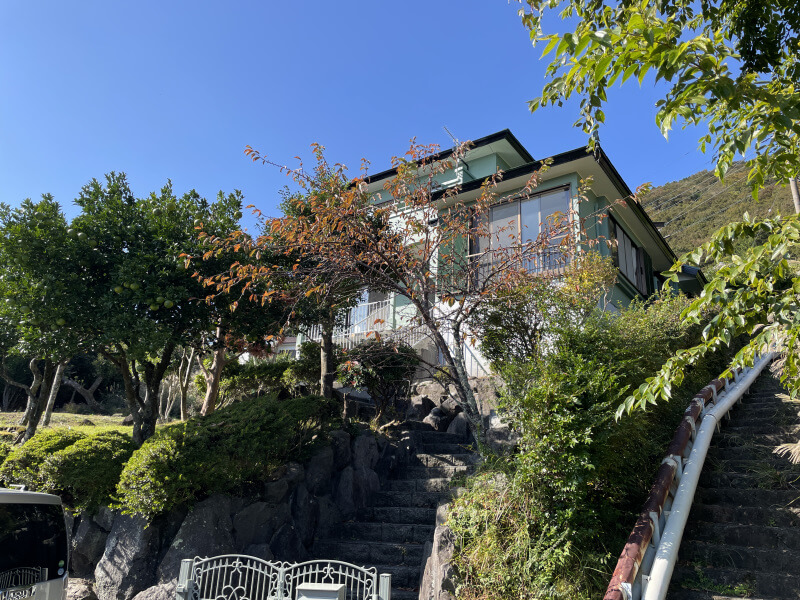 高台にあり、広い敷地で海を望む温泉付きの3LDKの物件です。室内は奇麗にお使いです。