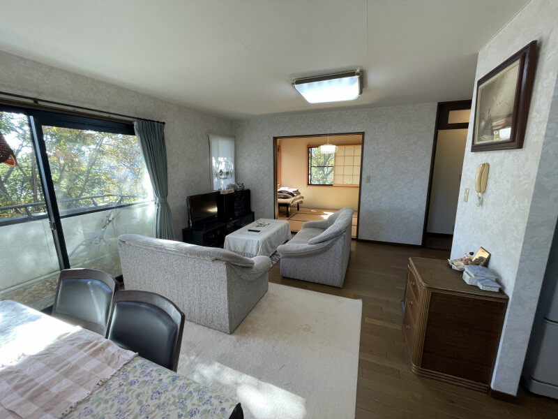 バルコニーから緑が見え、四季折々の自然な環境の中でゆったりしたお時間を。 室内きれい、即入居可能!