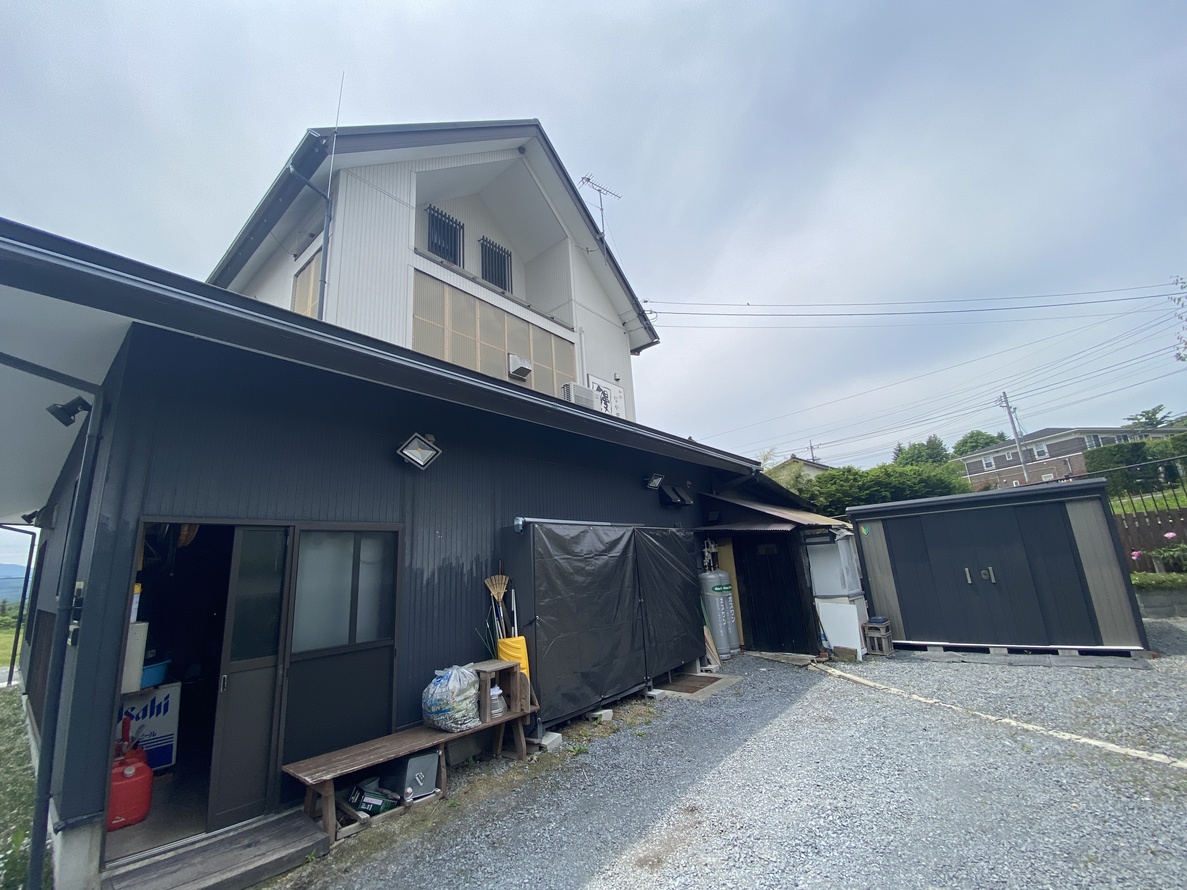 【居抜き】盛業中の飲食店舗です。信濃追分駅近!軽井沢では貴重な近隣商業地域です!駐車場6台停車可、1階にテラス、室内客室あり!厨房にはグリストラップ設置済みで各業種運営可能です!2階は住居使用になっていますので移住&カフェ運営!2階を従業員の住まいにすることも可能!近隣商業地域のためホテル転用も可能です!★