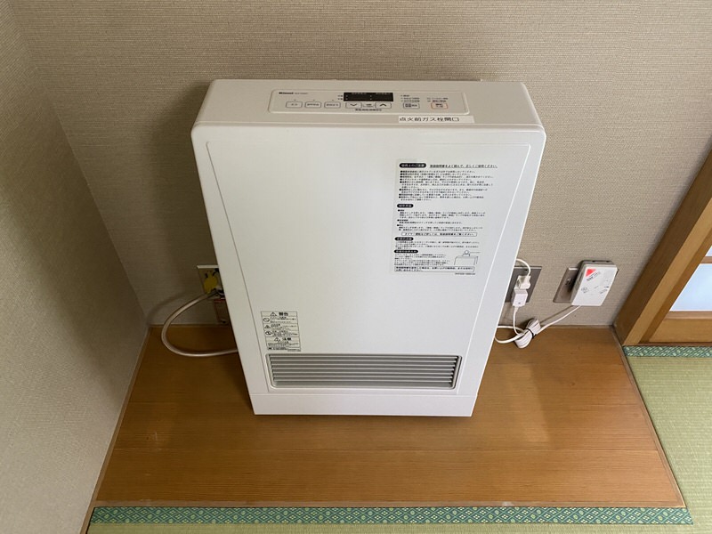 給湯/電気温水器、コンロ/電気コンロ、暖房/ガスファンヒーター、冷房/なし