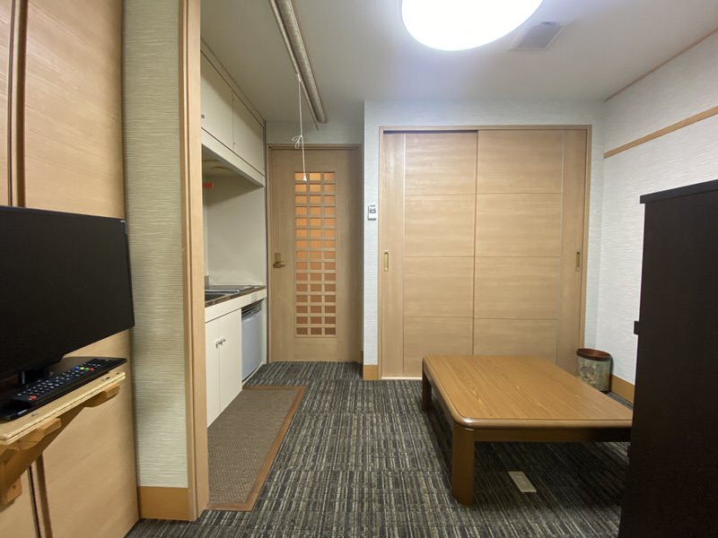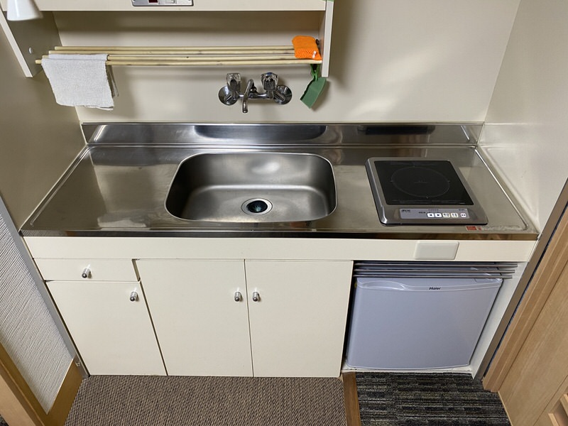 こちらのお部屋には浴室がありません。電気温水器は小型に変更済。