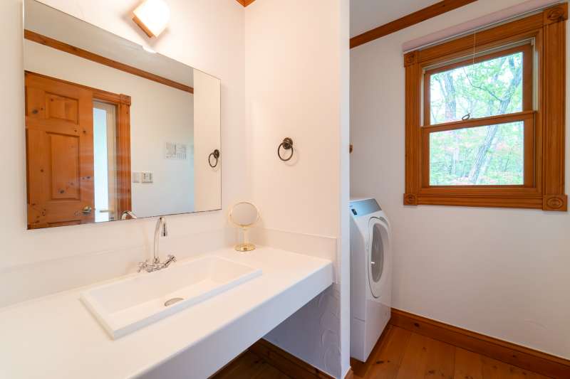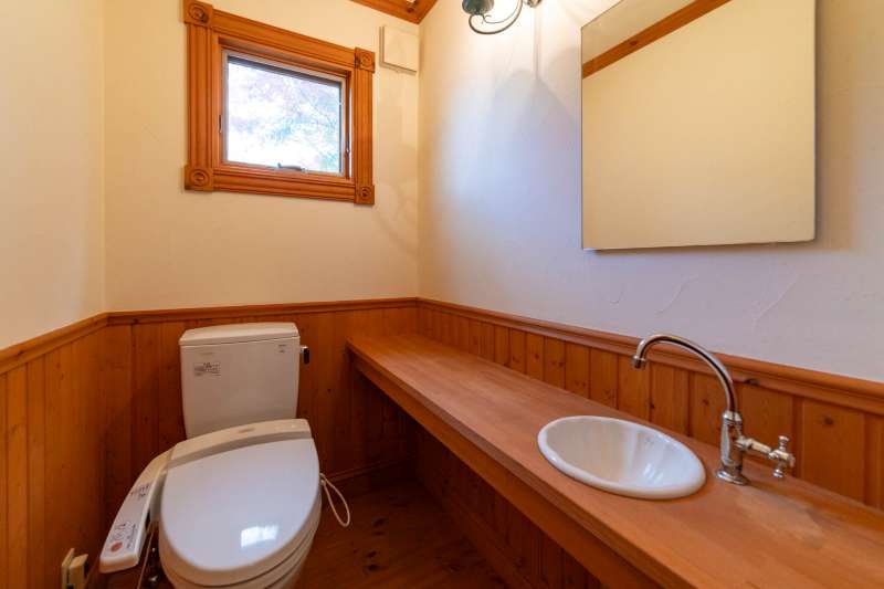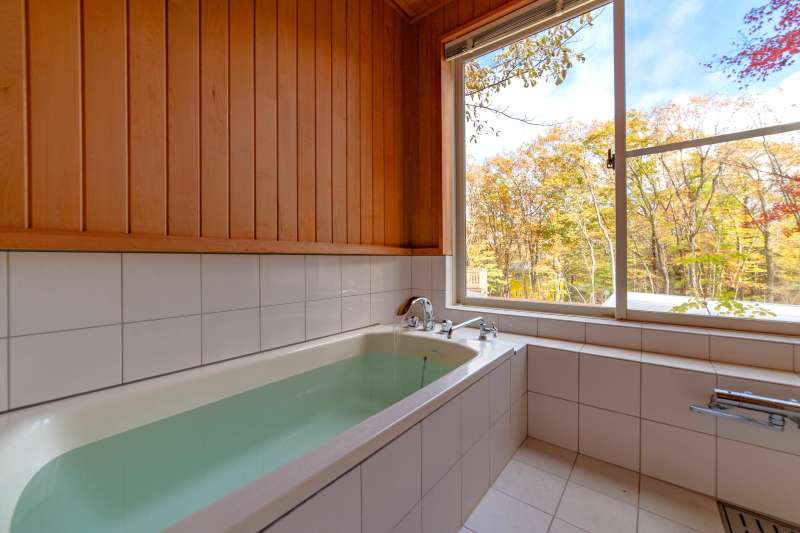 板張り浴室+外気浴テラス×ファイヤーピット×温泉可! エンゼルフォレスト那須内の静かな森に佇む、 内外装リフォーム済・人気の平屋建て(92.54㎡)。 約209坪の広大な敷地に、板張りの浴室+外気浴テラス、 さらに大谷石ファイヤーピット付きのウッドデッキを備えた特別な一邸。