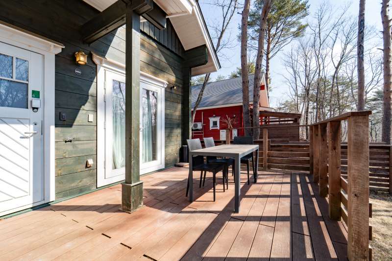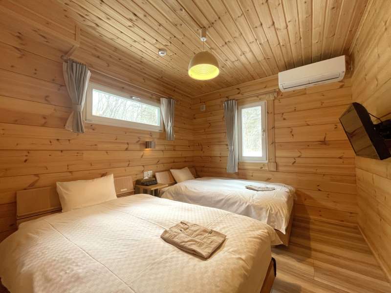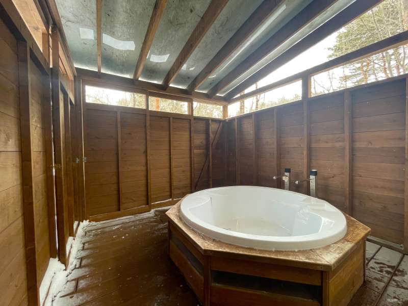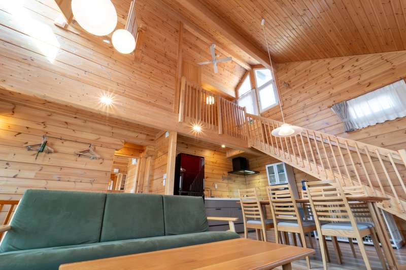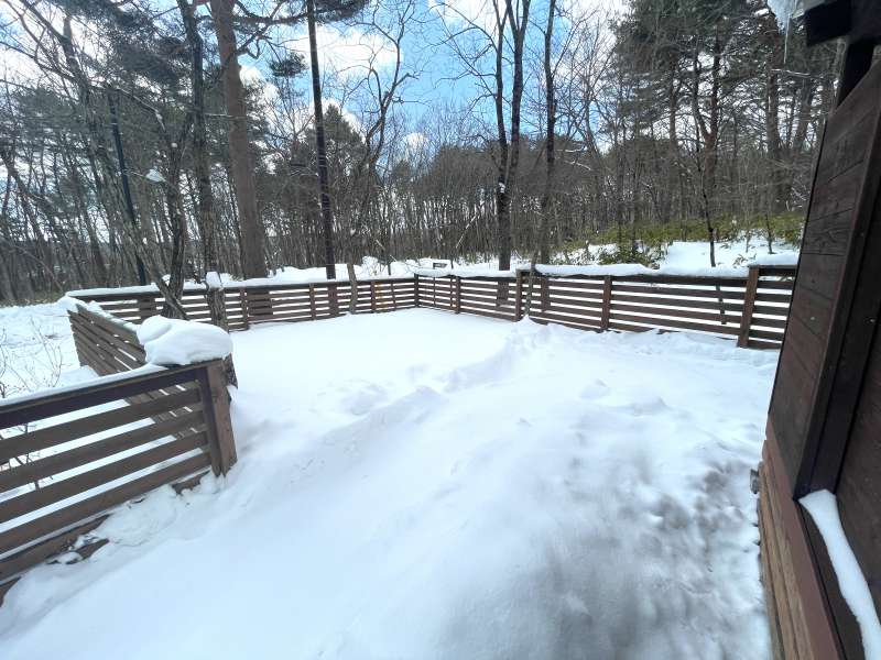※現在貸別荘として運用中の物件です。購入時に(株)エンゼルホテルズを借主とする賃貸借契約を締結し、貸別荘として運営します。 バーチ材の明るくぬくもりある家具で統一した居心地の良い空間を展開しています。 露天風呂、薪ストーブ、プライベートドッグランを完備。 浴室には天然温泉を引き込んでいるためお好きな時間にプライベート温泉を楽しめます。