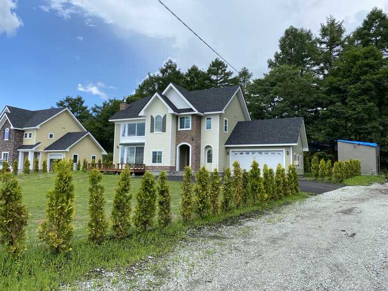 自然豊かで明るい別荘地の環境、平坦で日当たりの良い立地。南西方向の遠方には八ヶ岳連峰が望める眺望の良い物件です。千ケ滝別荘地に隣接の別荘地です。建物は4LDK+書斎+ビルトインガレージ2台+15畳のウッドデッキ付きです。※