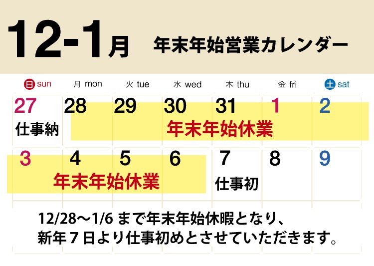 年末年始の営業予定について
