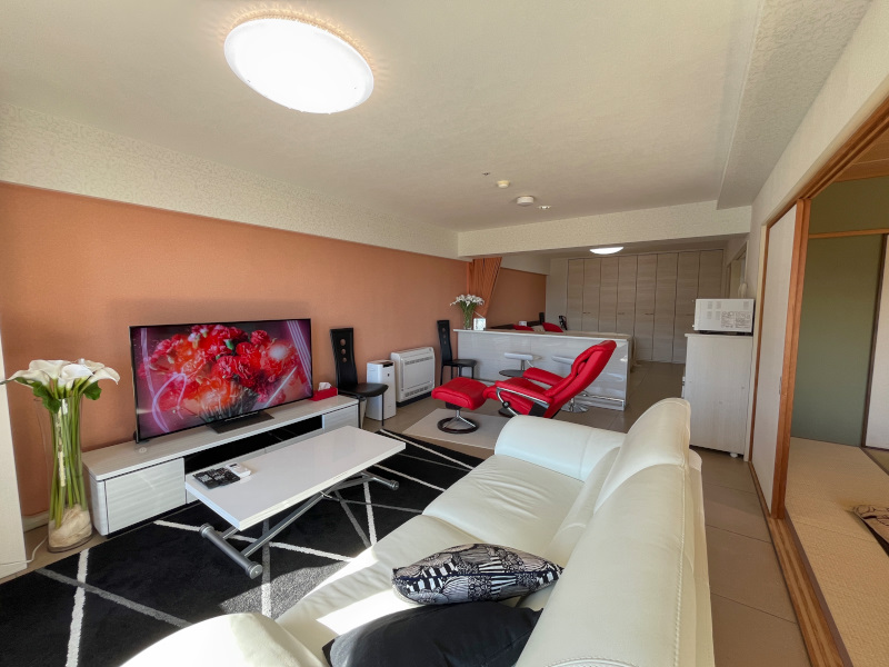 ホテルを思わせるエントランスは高級感があり、プールやバーベキューエリアなどの共用部も充実しています。タワー型マンションの特徴である内廊下嬉しいポイントです。お部屋からは天気が良いと富士山が見えます。リフォーム済なのですぐにお使いいただけます。