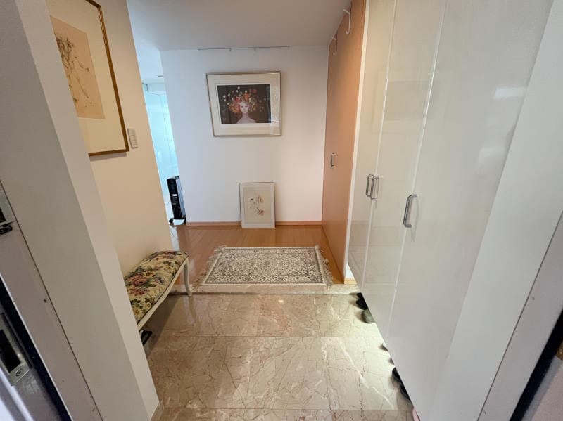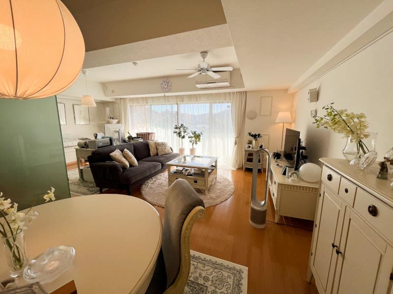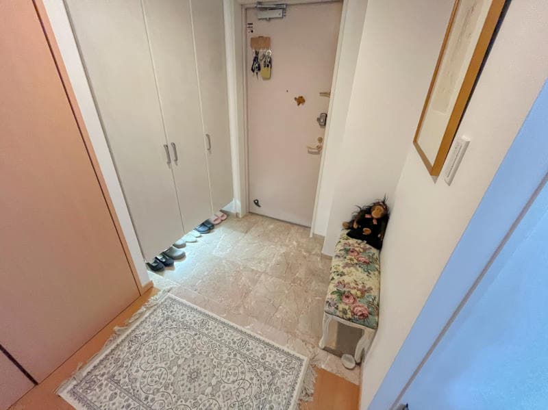 高台にある温泉大浴場付きマンションです。現オーナー様が水回りや、壁紙などリフォーム済みのお部屋です。また、共用部には温泉大浴場があり、日頃の疲れを癒すにはぴったりです。玄関が広めで、物入と下足入れがあるため、外出時にスムーズに準備することができます。浴室はシャワーブースとなっています。※ご定住中のため、前もっての内覧予約をお願いいたします。