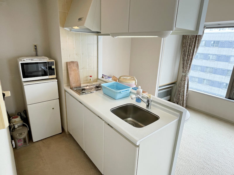 給湯/ガス給湯器、コンロ/ガスコンロ、暖房/ガス暖房機、冷房/なし(窓枠クーラー設置可能)