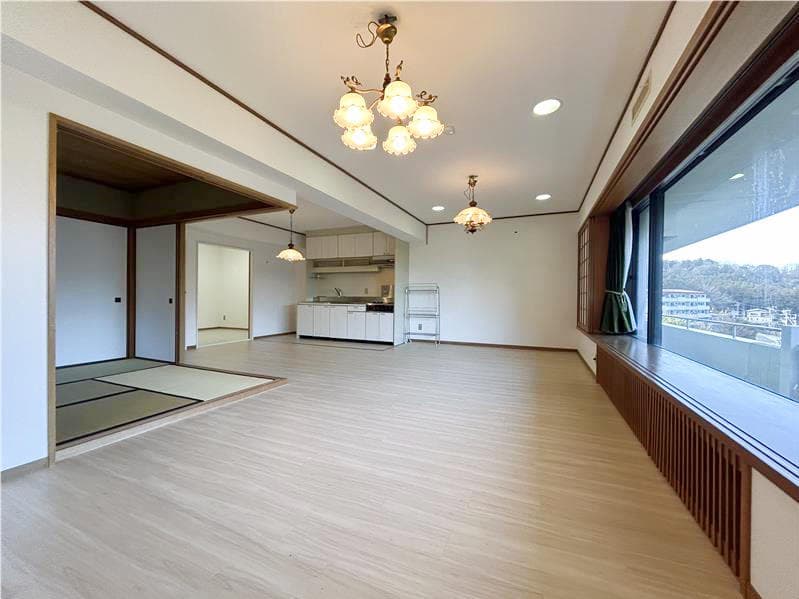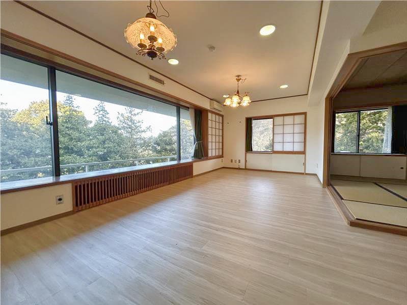 ★小涌谷エリアの緑豊かなエリアにあるマンション。リビングは2面採光で広さがあります。サービスルームは荷物の保管はもちろん、ちょっとした作業スペースにも利用できます。マンション敷地内は自然豊かで、春は新緑、秋は紅葉と四季の変化を楽しめます。