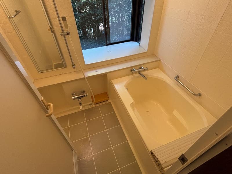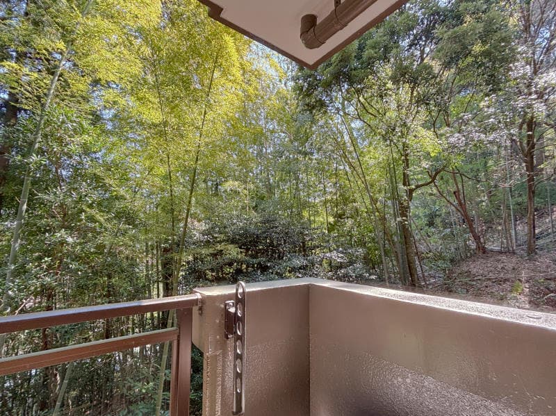 ★箱根町宮ノ下エリアにある数少ないマンション。温泉大浴場で木賀温泉を楽しめます。木々に囲まれ、自然豊かな場所でゆっくりしたい方におすすめです。小田原方面からいらっしゃる方にもおすすめです。リビングには出窓、ウォールシェルフがついており、小物や観葉植物などを置くことができます。バルコニーや浴室の窓からの木漏れ日で涼しく、リラックスしてお過ごしいただけます。
