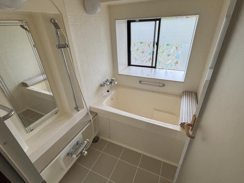 • 窓のステンドグラスシールがおしゃれな浴室
