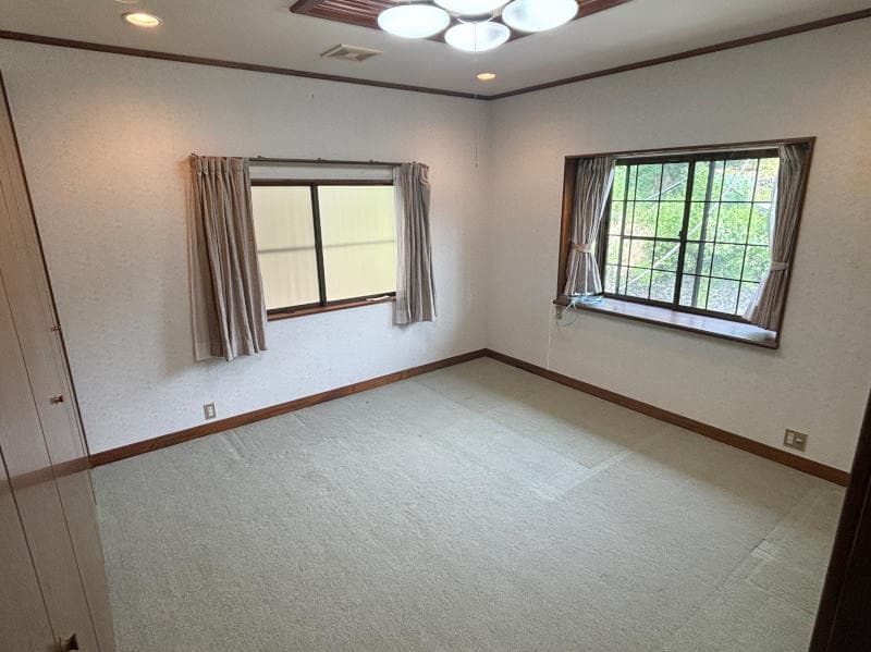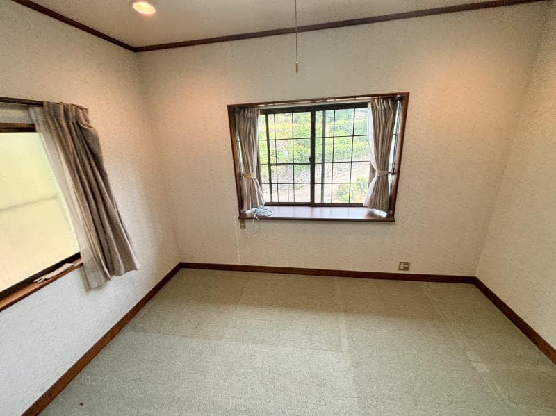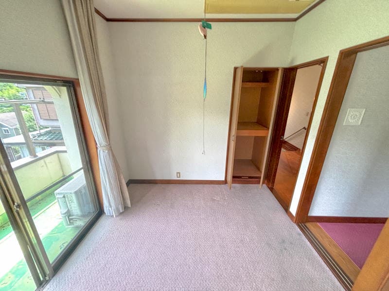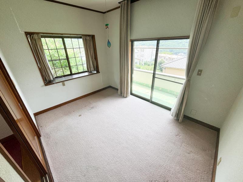 湯河原町宮上エリアにあり、遠方に山が見える一戸建て物件です。南西向きで浴室や洗面室、トイレ、各部屋に窓がある間取で明るい室内です。2階部分には大きなクローゼットがあり、収納箇所も豊富です。敷地内には緑が広がり、お庭として楽しめます。