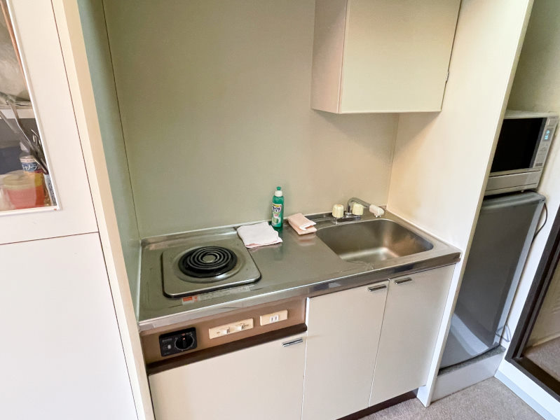給湯/電気温水器、コンロ/電気コンロ、暖房/パネルヒーター(和室のみ)、冷房/なし(窓枠クーラー設置可能)