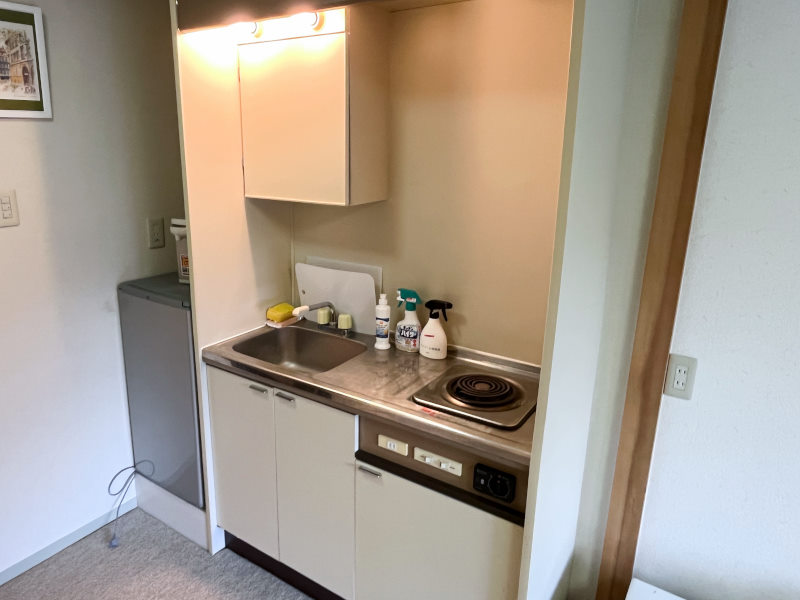 給湯/電気温水器、コンロ/電気コンロ、暖房/パネルヒーター(和室のみ)、冷房/なし(窓枠クーラー設置可能)