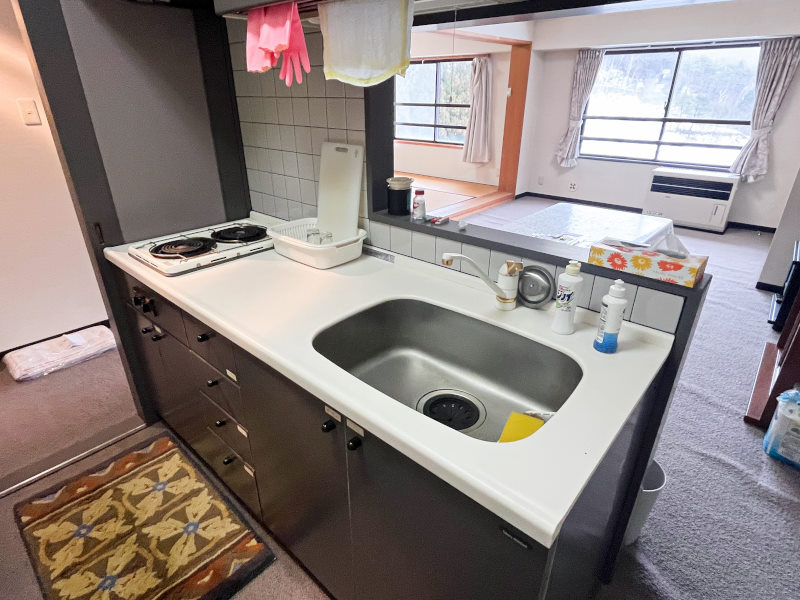 給湯/電気温水器、コンロ/電気コンロ、暖房/石油FF式ファンヒーター、冷房/なし