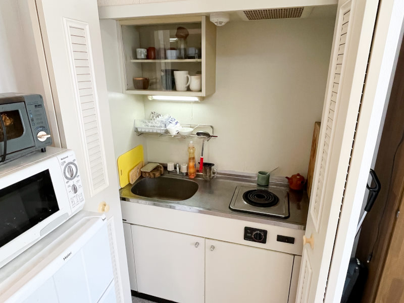 給湯/電気温水器、コンロ/電気コンロ、暖房/ベースボードヒーター、冷房/なし(窓枠クーラー設置可能)